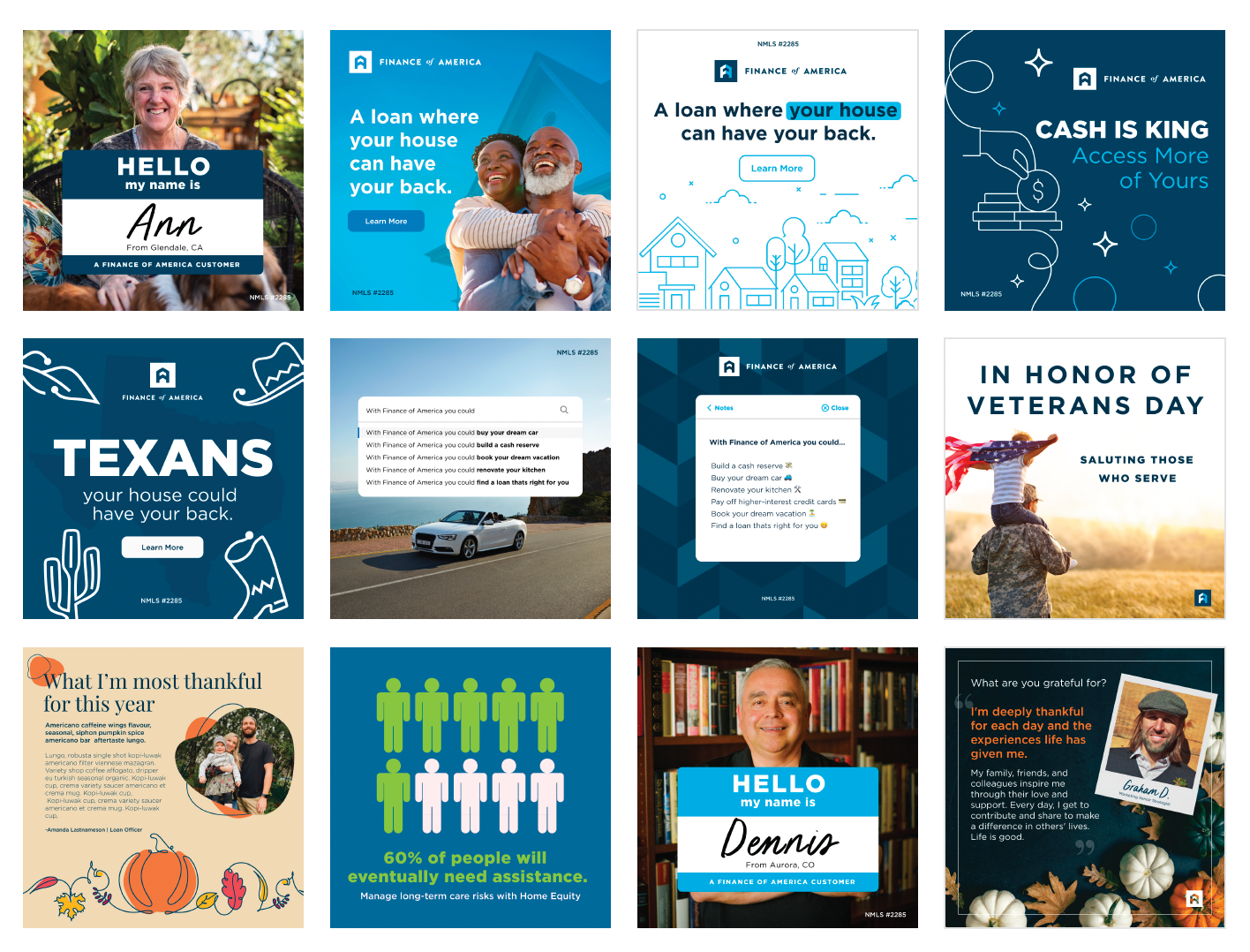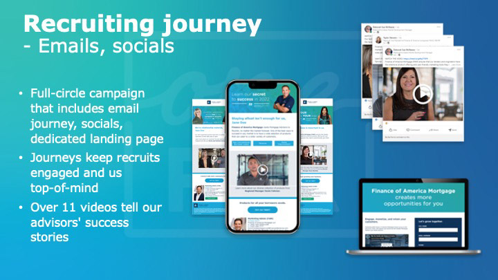 During Finance of America’s brand refresh, I led my design team through a comprehensive creative overhaul that aligned our visual identity with the company’s evolving vision. I provided strategic direction, coached designers at all levels, and established clear workflows to ensure consistency across every deliverable—from digital campaigns to print collateral. By fostering collaboration with cross-functional teams and encouraging innovative design solutions, we not only elevated the brand’s presence but also achieved industry recognition. Our work earned the prestigious Platinum Hermes Creative Award, a testament to the team’s creativity, discipline, and dedication to producing impactful design.